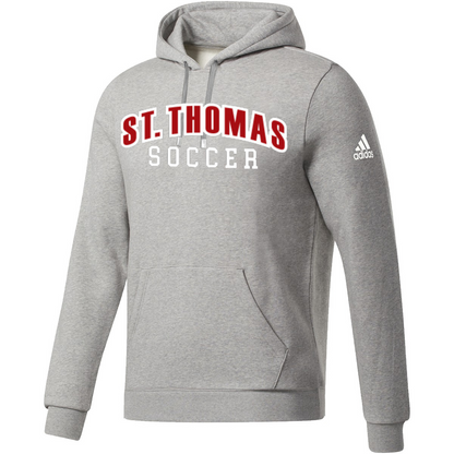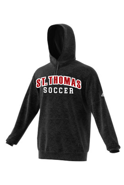 Includes "ST THOMAS" sewn and embroidered "SOCCER" below and initials to right sleeve.