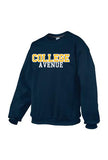 COLLEGE sewn twill with AVENUE text embroidered below.