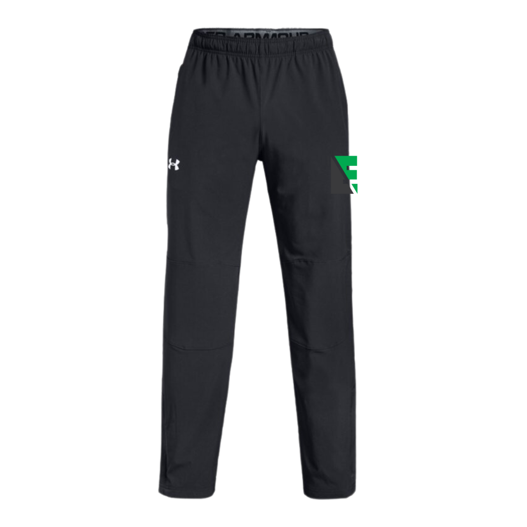 Includes logo to left thigh and name or number to right thigh below UA logo.