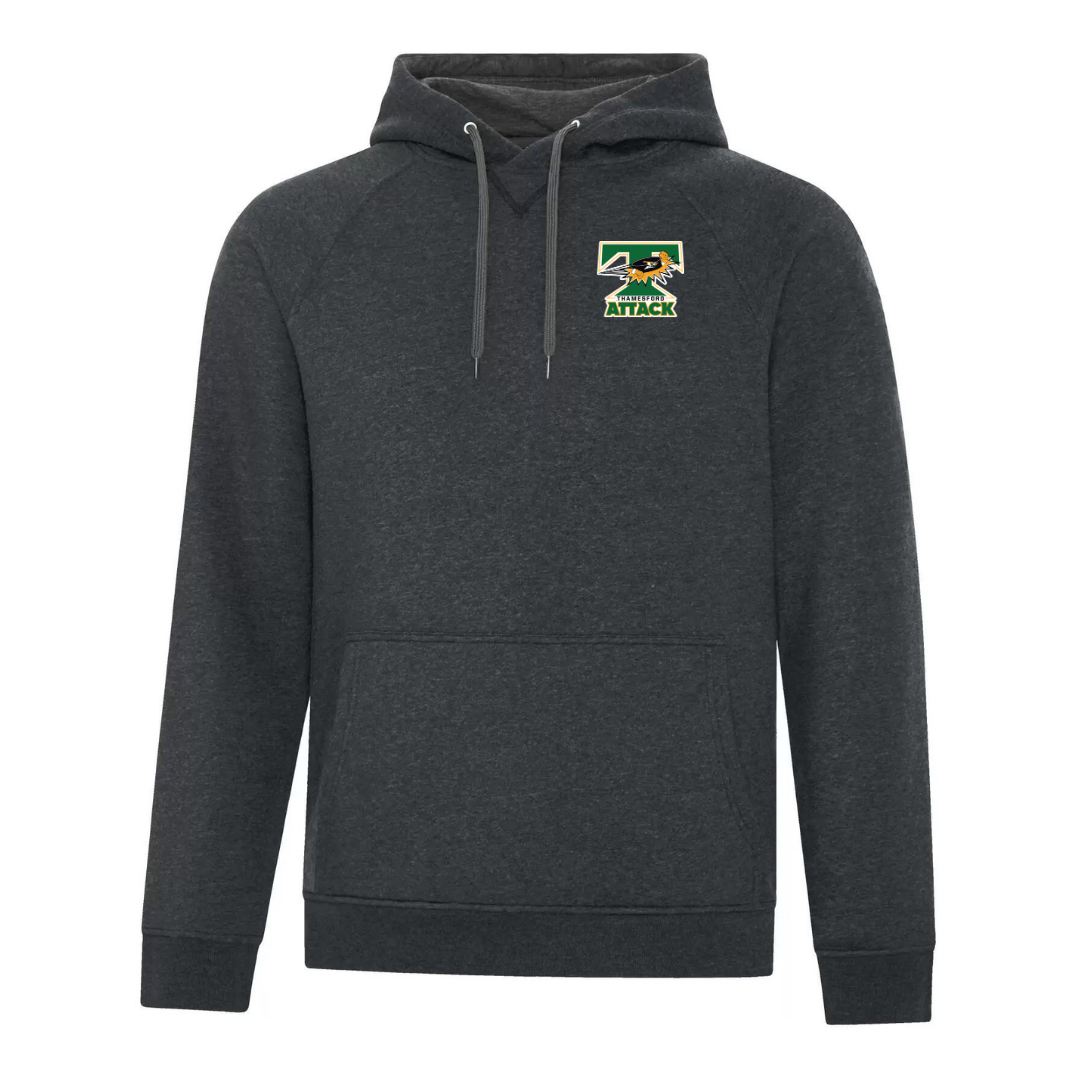 - 60/40 cotton/polyester jersey lined hood with contrast drawstring